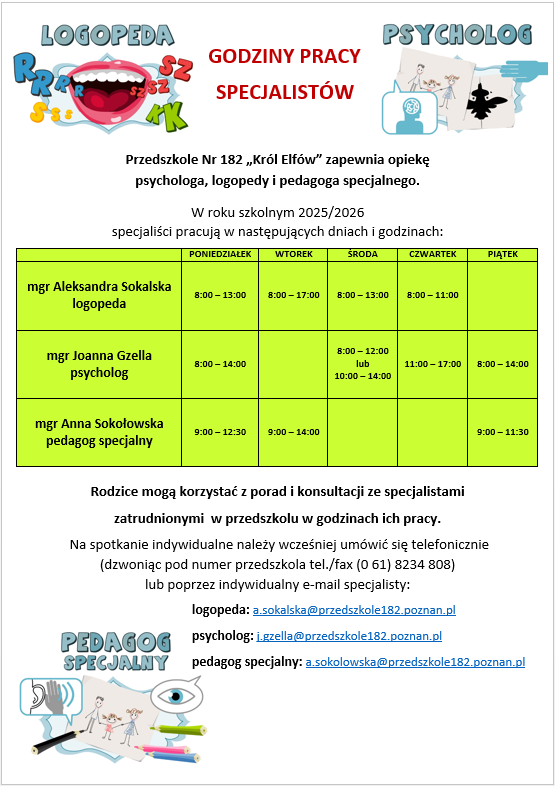 współpracuje z Poradnią Psychologiczno – Pedagogiczną nr 4 Poznań – Piątkowo