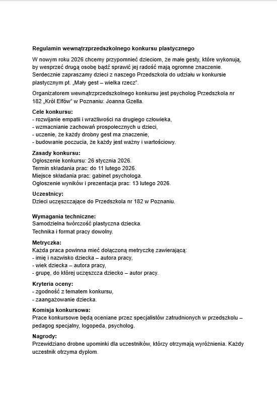 PRZEDSZKOLE NR 182 „KRÓL ELFÓW”