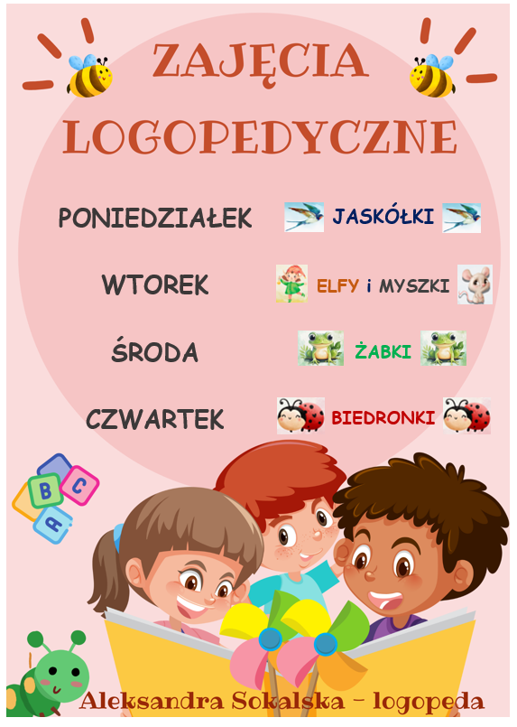 - prowadzi zajęcia logopedyczne w celu zminimalizowania wad wymowy lub ich usunięcia;